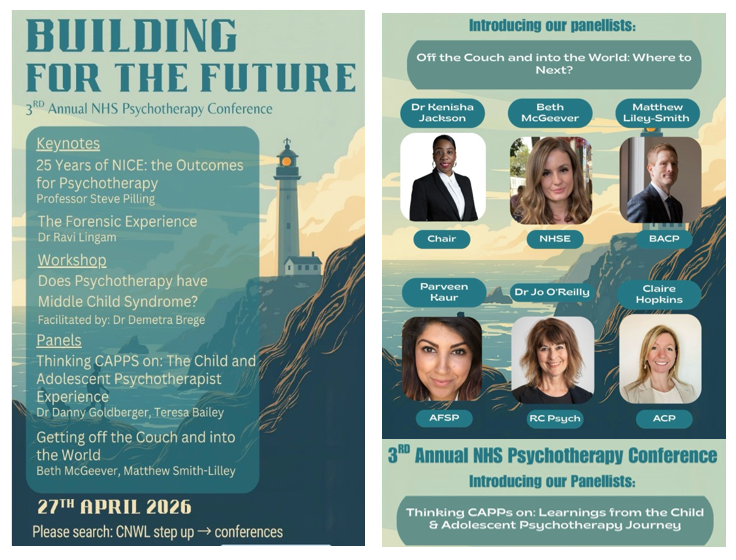 The ACP is pleased to be participating in the CNWL 3rd Annual NHS Psychotherapy Conference: 'Building for the Future: Getting off the Couch and Into the World’.